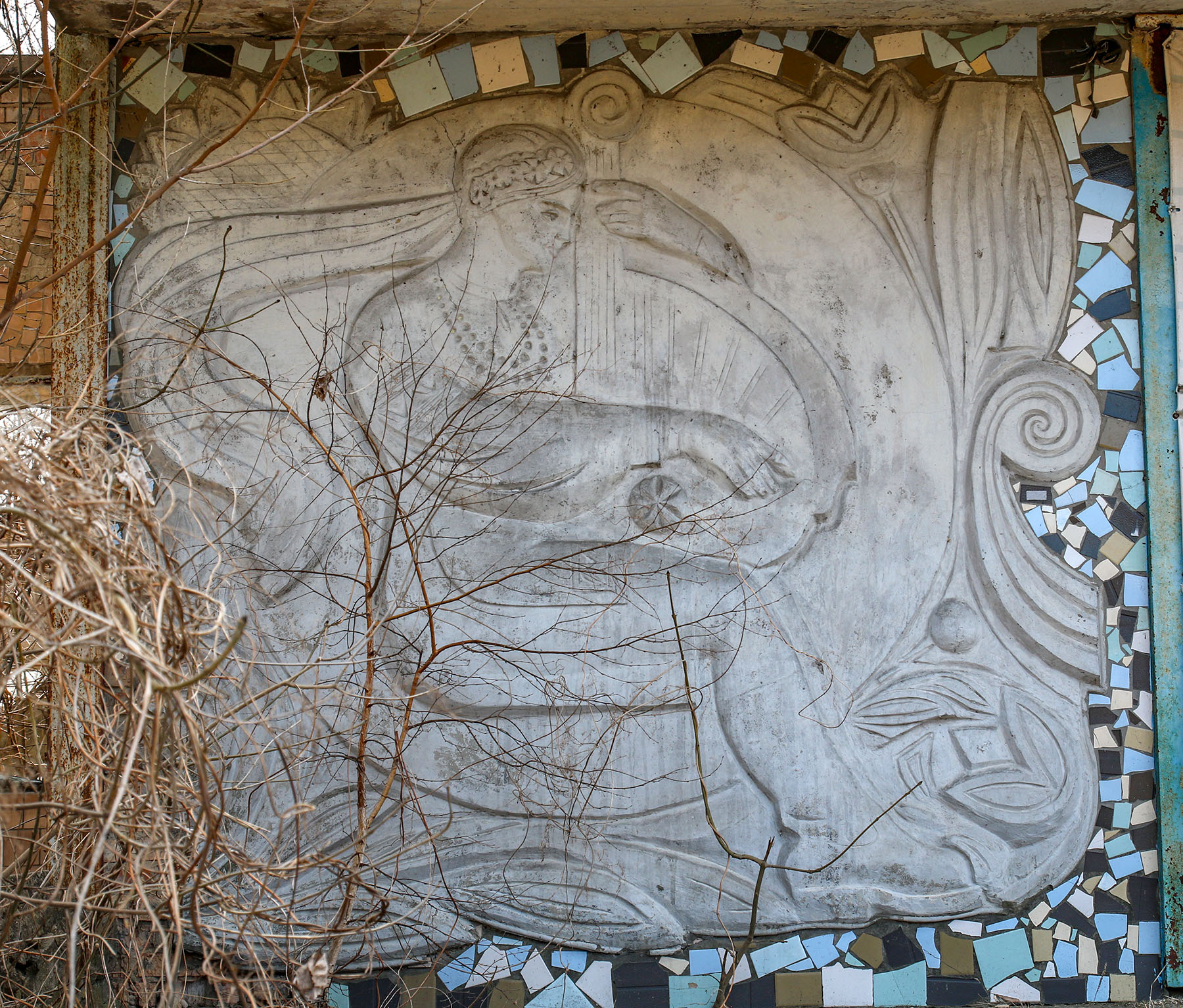 Барельєф на покинутому будинку культури