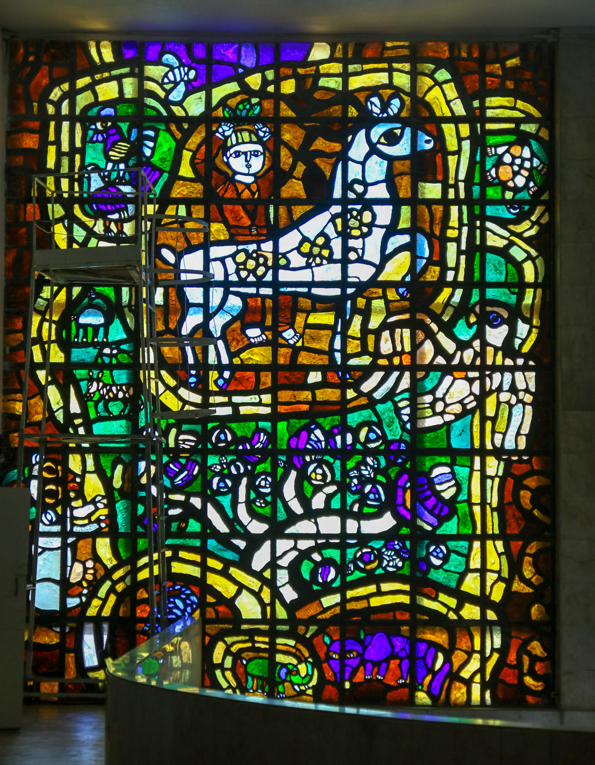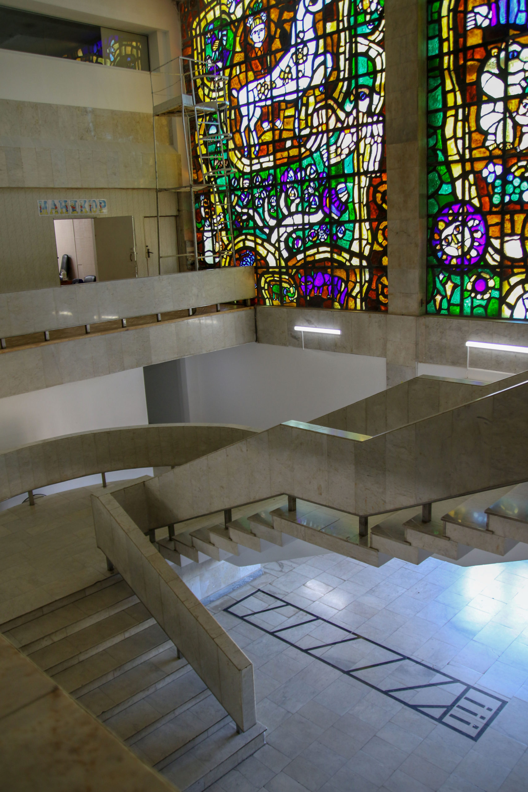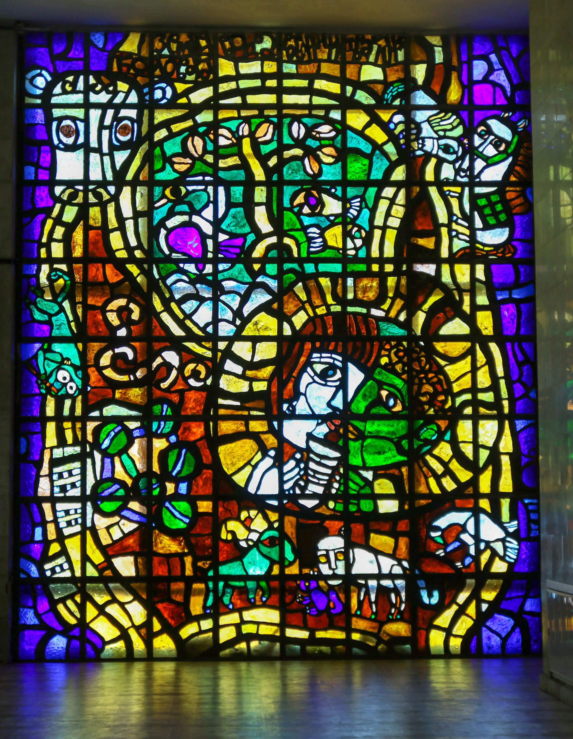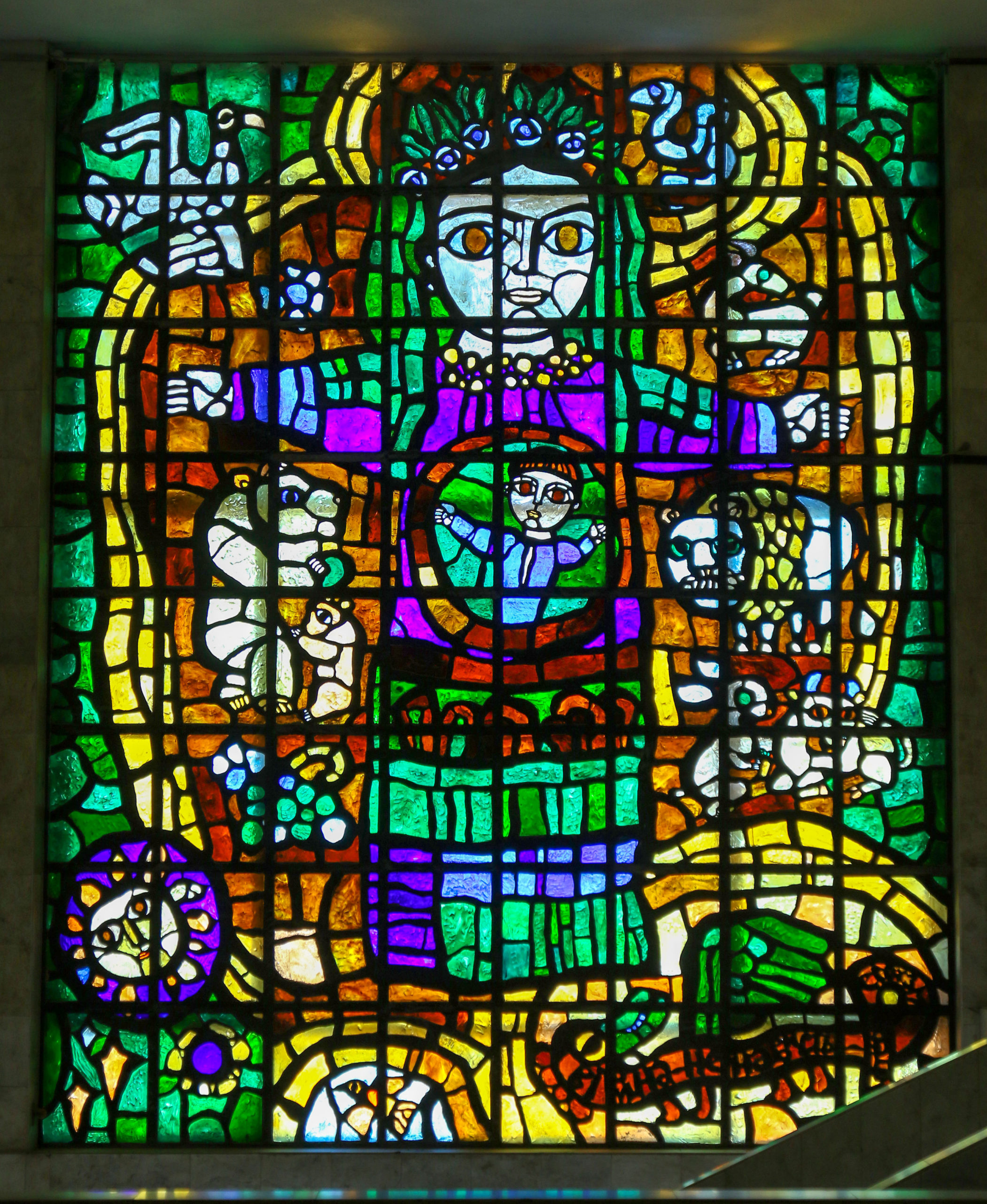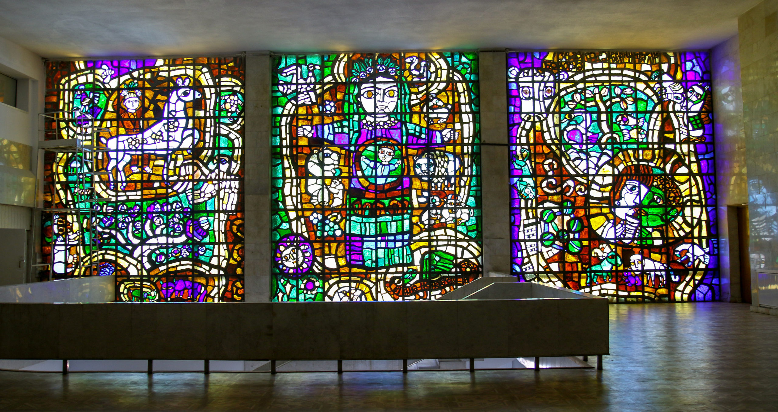 Вітраж з литого скла «Люди, бережіть Землю» Івана-Валентина Феодосійовича Задорожного площею 150 кв.м. був створений в 1976-1979 роках.