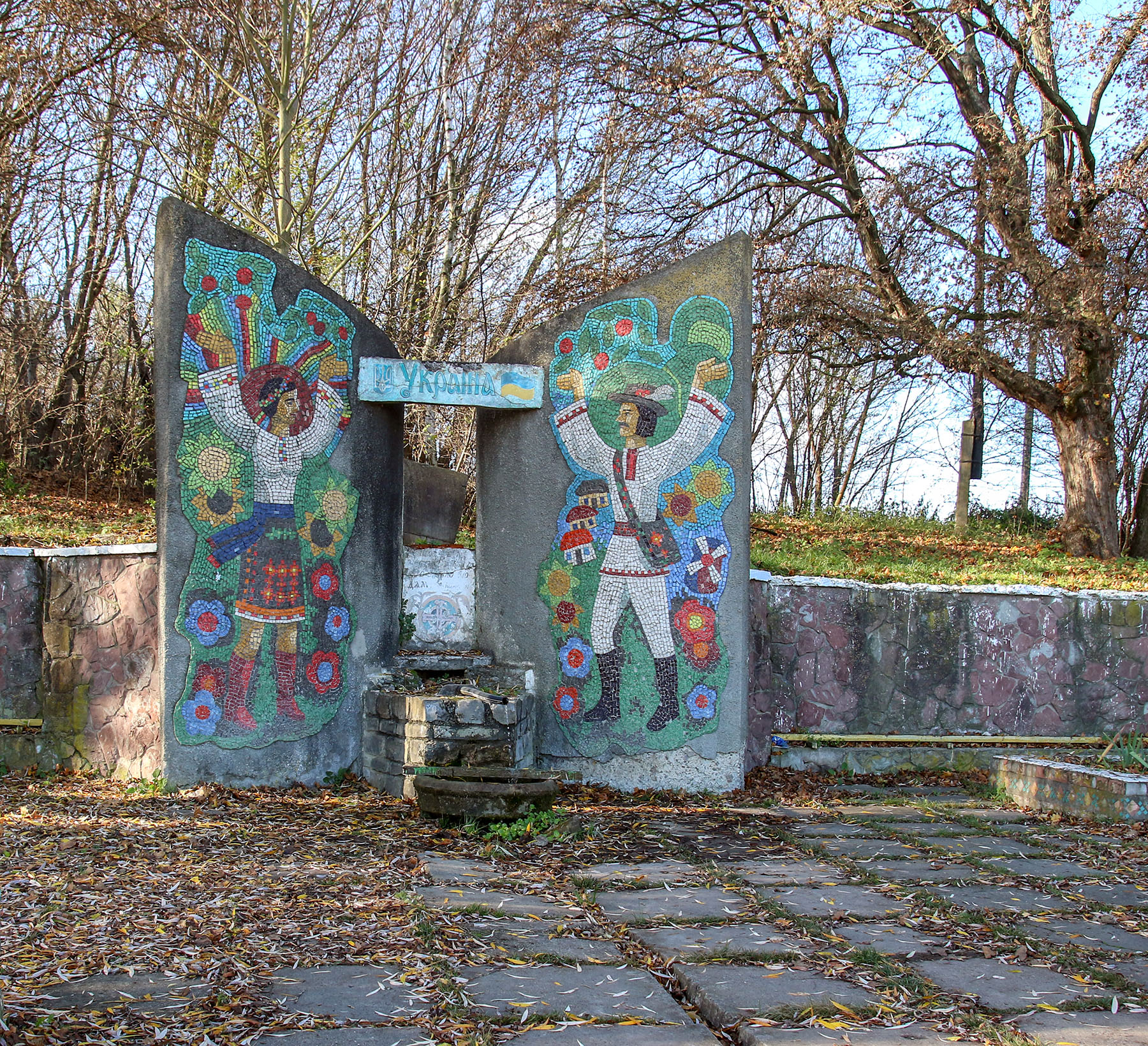 Оздоблення джерела мозаїчним панно в місті Хотині
