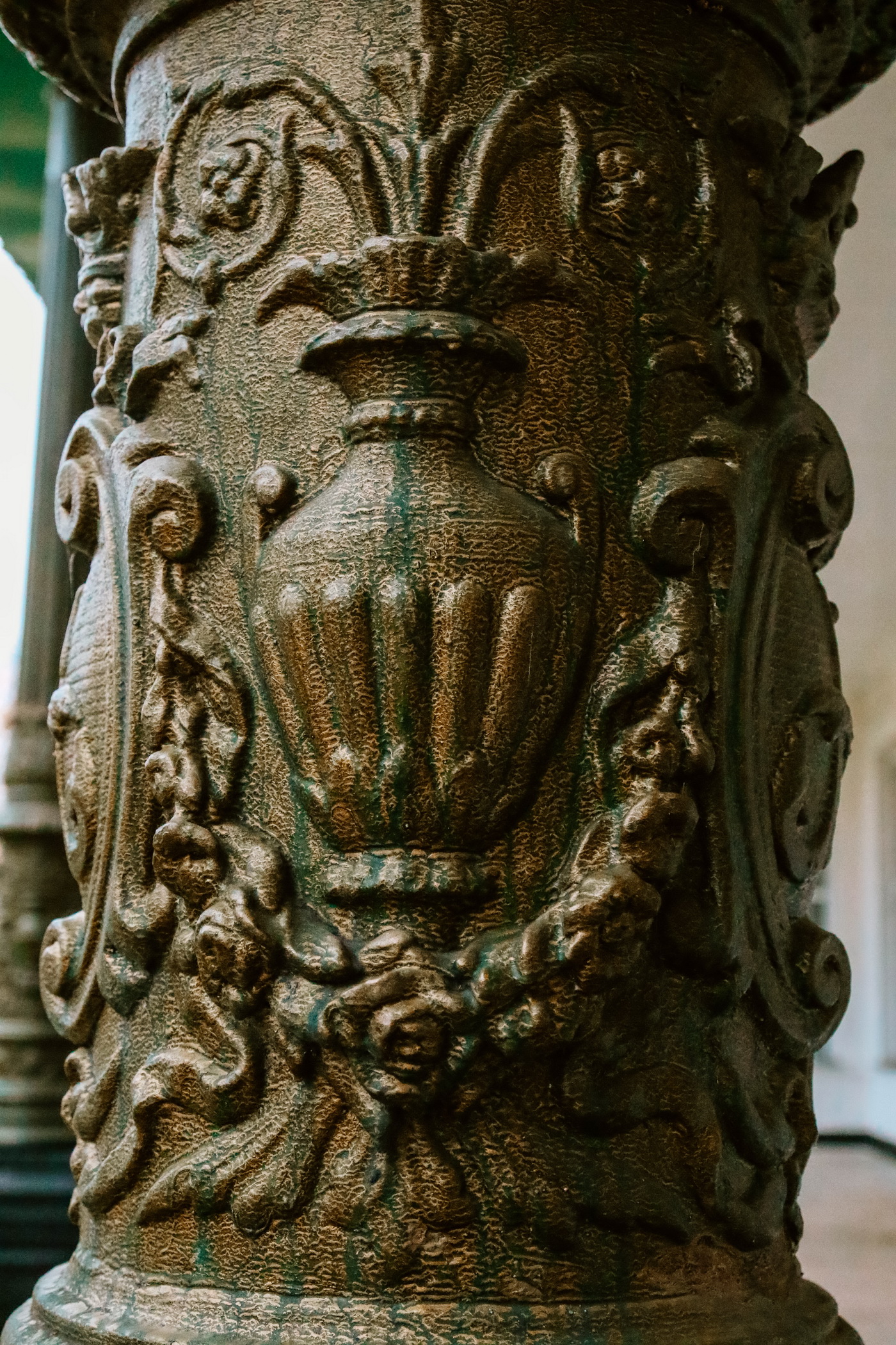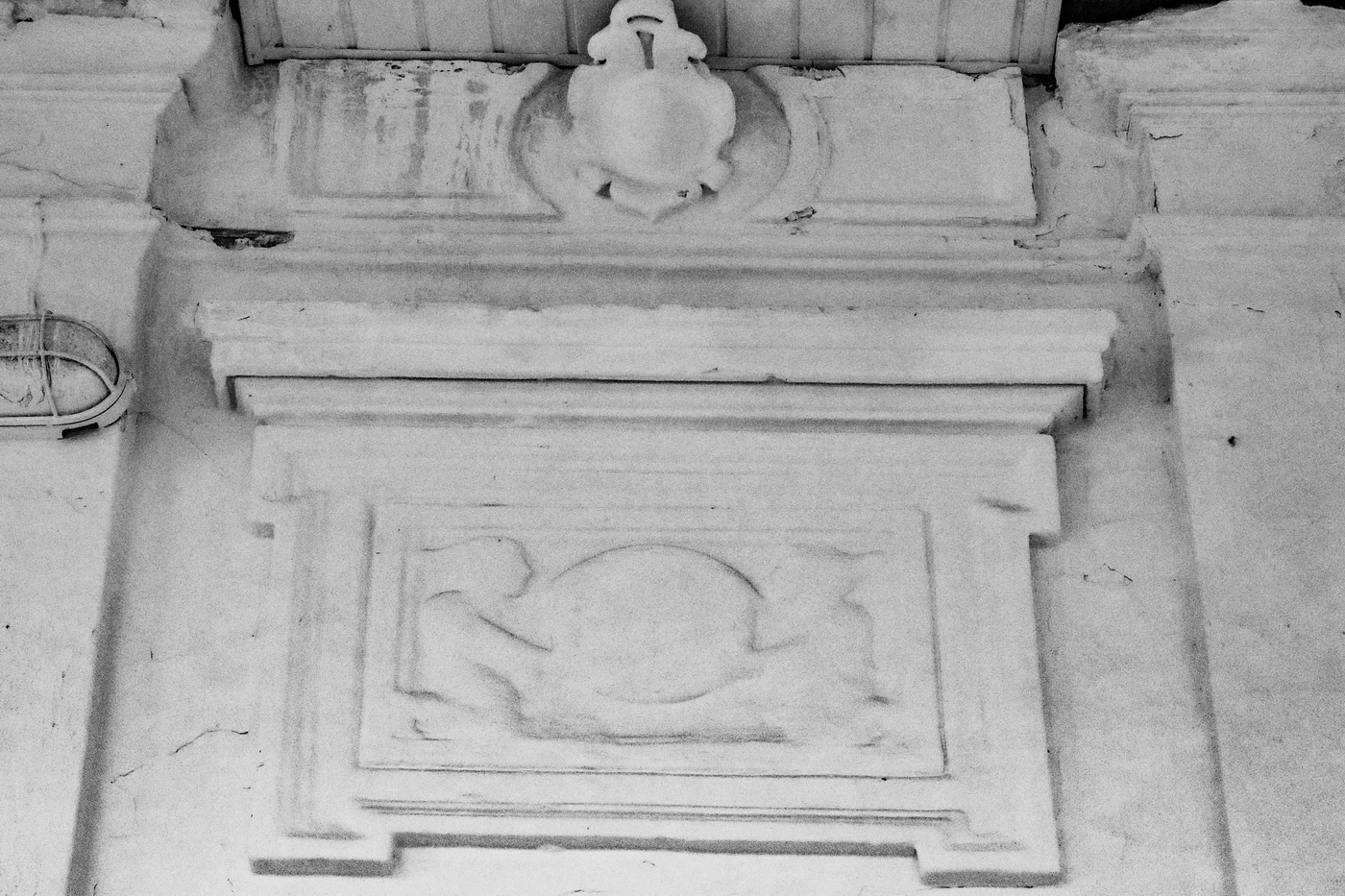 Простий фасад палацу в стилі пізнього класицизму з білими колонами видніється з головного входу. Фасад досить строгий і стриманий. З іншого боку, обійшовши його, ви побачите зовсім іншу картину: відкриту терасу з колонадою тосканського ордена. Рослинний орнамент на колонах, літера «А» (або від Абази, або від імені царя Олександра, ці колони були виготовлені в Петербурзі в майстерні царя Олександра ІІ) і корону над нею. Походження князя з Молдови пояснює мотиви декору паркового фасаду палацу.