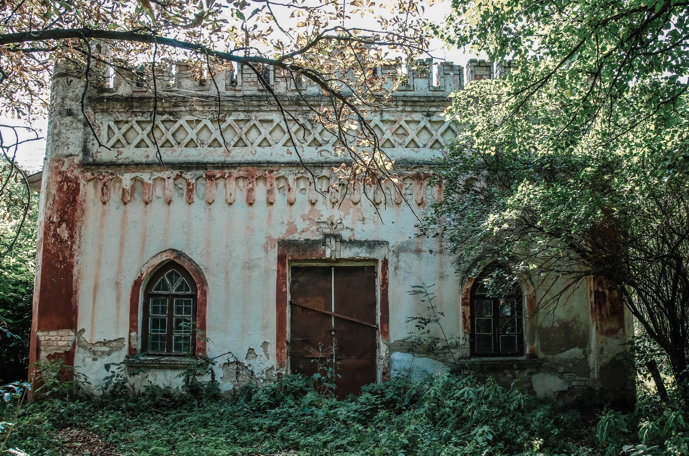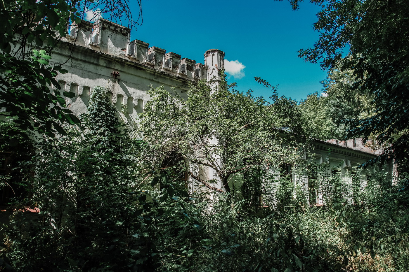 Неоготичний палац до наших днів не дожив, згорівши у полум’ї Другої світової війни. Проте залишилося декілька будівель маєтку у стилі неоготики. Найцікавіша з них – довга одноповерхова будівля з башточками і стрільчастими вікнами.
